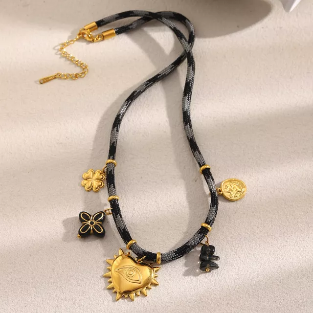 Don’t let your jewelry box remain ordinary! Elevate it with our stunning 18K Gold Plated Woven Rope Heart Eye Charm Necklace. This isn’t just a necklace; it is an expression of love and style. Order yours today and enjoy the perfect blend of elegance, durability, and charm in your accessory collection!