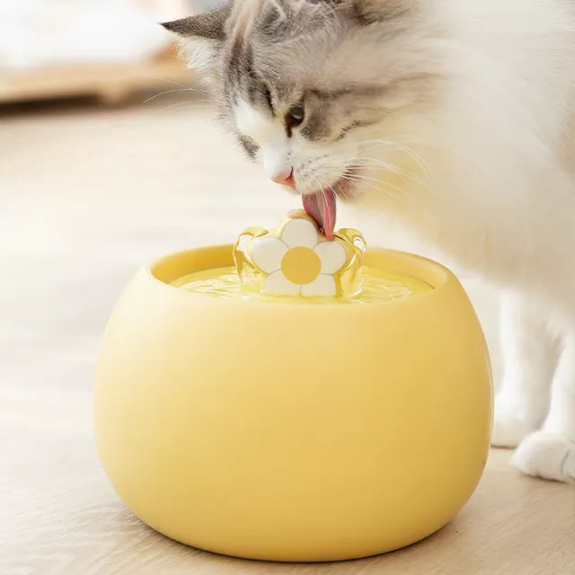 1L Flower-Shaped Ceramic Pet Bowl with Automatic Water Circulator