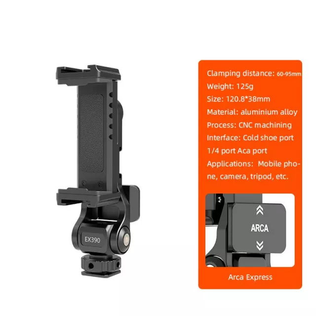 Unlike flimsy plastic mounts, this tripod phone clamp is built from high-quality metal for long-lasting reliability. The integrated cold shoe and Arca base set it apart from ordinary mounts, giving you real versatility without buying additional accessories. The 360° rotatable head adds smooth motion to your workflow, letting you capture the perfect angle in seconds.