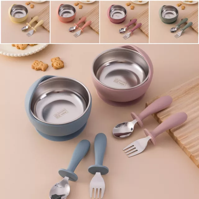 3PCS Stainless Steel Silicone Baby Feeding Set with Suction Bowl & Training Utensils