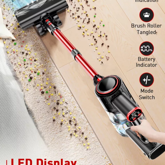 - LED Smart Display: Shows battery level, suction mode, and alerts for blockages.