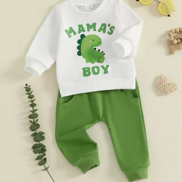 • 2-Piece Set: Includes a dinosaur letter print pullover and matching solid pants