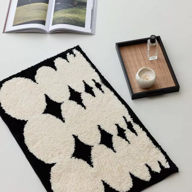 Black and White Tufted Bathroom Mat – Soft Anti-Slip Floor Rug
