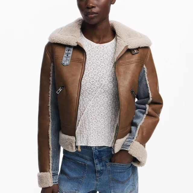 Desigual Beige Women’s Blazer with Zip Closure