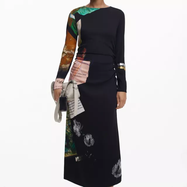Desigual Black Printed Long Sleeve Dress – Women’s Viscose Elegance
