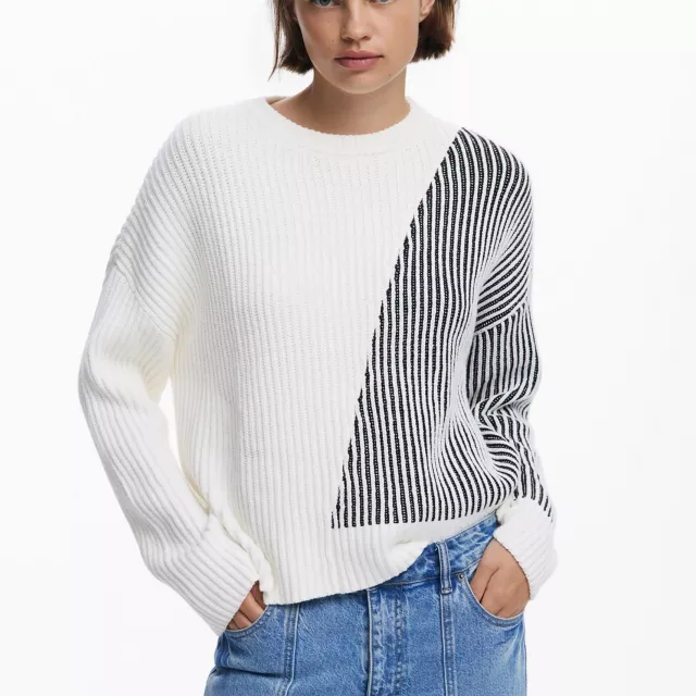 Desigual Women’s Colorful Knit Sweater – White with Long Sleeves