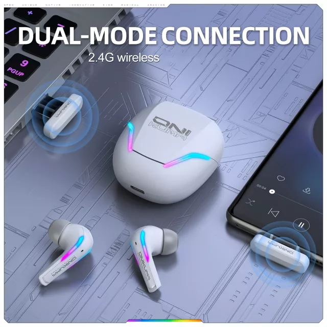 Step into your games like never before with the dual mode wireless gaming earbuds that bring your favorite worlds to life. Designed for both 2.4G wireless and Bluetooth 5.3 connectivity, these earbuds deliver ultra-stable, low-latency performance for smooth gameplay and crystal-clear communication. Whether you’re battling online or streaming music, they keep you fully connected and in control.