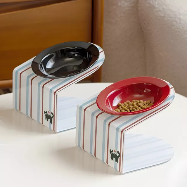 Elevated Tilted Ceramic Cat Bowl with Acrylic Anti-Slip Stand