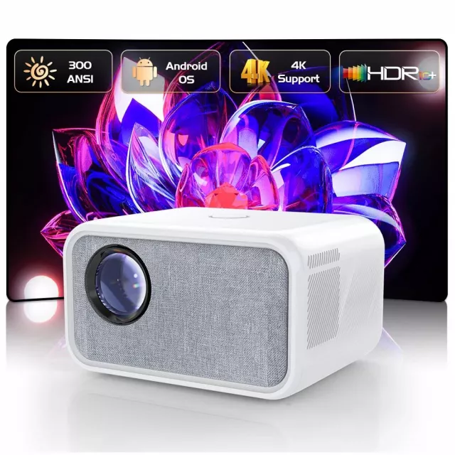 Full HD 1080P 4K Smart WiFi Projector with Android & Bluetooth