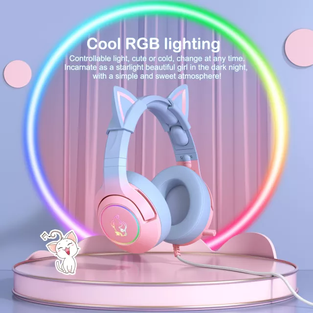 Unleash your ultimate gaming persona with this Gradient Cat Ear Gaming Headset, designed to make you stand out visually and perform audibly. Whether you’re streaming, team-chatting, or immersed in your favorite PC or console game, this headset delivers the perfect blend of style, comfort, and high-performance sound. With glowing RGB lights and cute detachable cat ears, you’ll look as good as you play—bold, unique, and totally unforgettable.