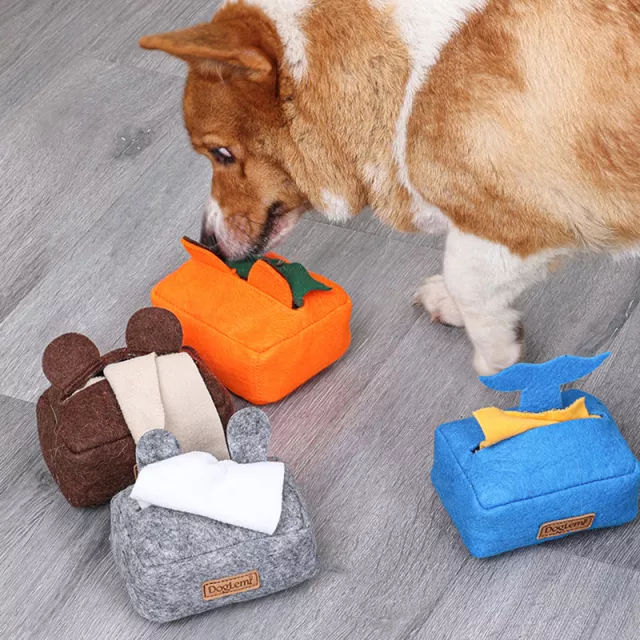 Make mealtime exciting and mentally stimulating with our Pet Sniffing Toy! This innovative interactive toy is designed to help your dog slow down while eating, turning their favorite treat into a fun and engaging puzzle. Shaped like a cute tissue box, this plush toy encourages your pet to use their natural instincts to sniff, search, and discover, providing both entertainment and enrichment.