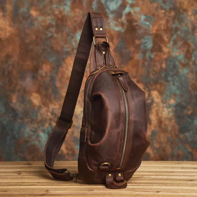 Men’s Genuine Leather Vintage Crossbody Chest Bag with Multi-Pocket Design