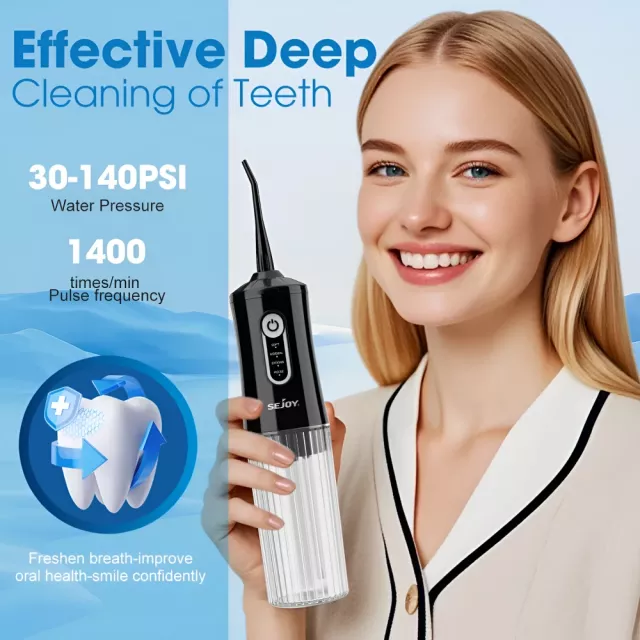No more struggling with string floss or bulky countertop irrigators. This portable water dental flosser gives you the freedom to clean your teeth effectively, wherever life takes you. Feel confident, refreshed, and ready to smile with every use.