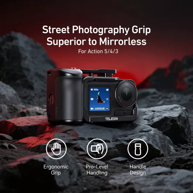 Take control of your street photography and action filming with the ultimate handheld upgrade. This all-in-one grip kit transforms your DJI Action 5, 4, or 3 into a powerful, easy-to-use camera rig—perfect for creators on the move. Designed with professional ergonomics and instant shutter access, this kit brings together comfort, control, and creative flexibility in one sleek package.