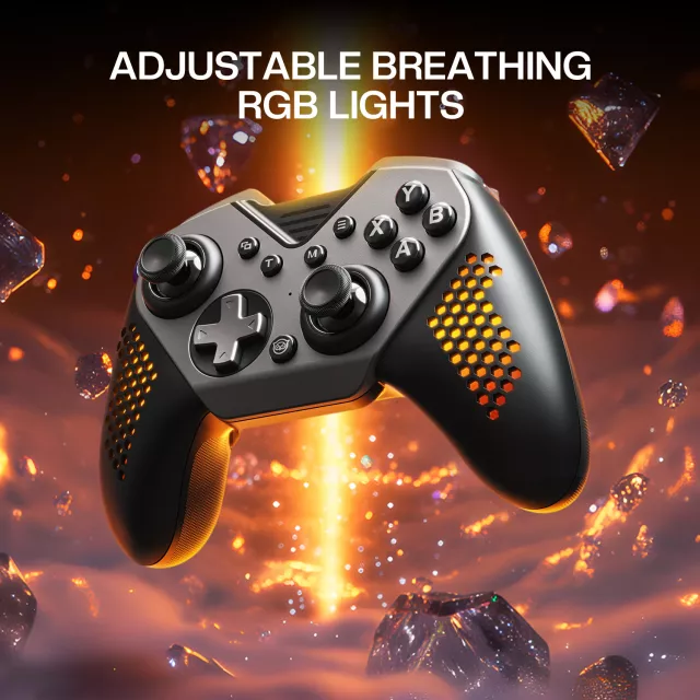 Crafted for flexibility and performance, the controller boasts a modular design with swappable keycaps for the ABXY buttons, as well as interchangeable D-pad and left joystick. Dual Hall Effect sensing joysticks deliver ultra-precise input with anti-drift technology and long-term durability. Experience every moment with analog triggers that respond with less than 0.1mm sensitivity — ideal for shooters, racers, and action titles. Integrated RGB breathing lights add a visual flair to match the mood of your game.